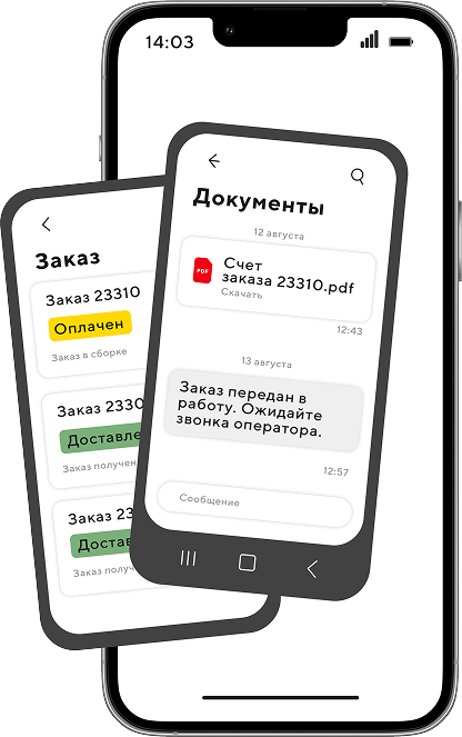 Клиенты могут следить за ходом выполнения заказов, общаться с менеджерами и обмениваться документами.